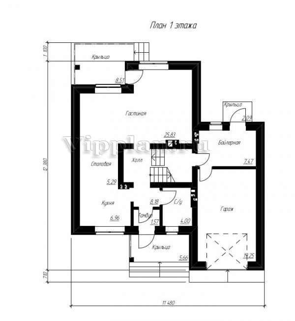 | Размеры дома: | 12.38м×11.48м |